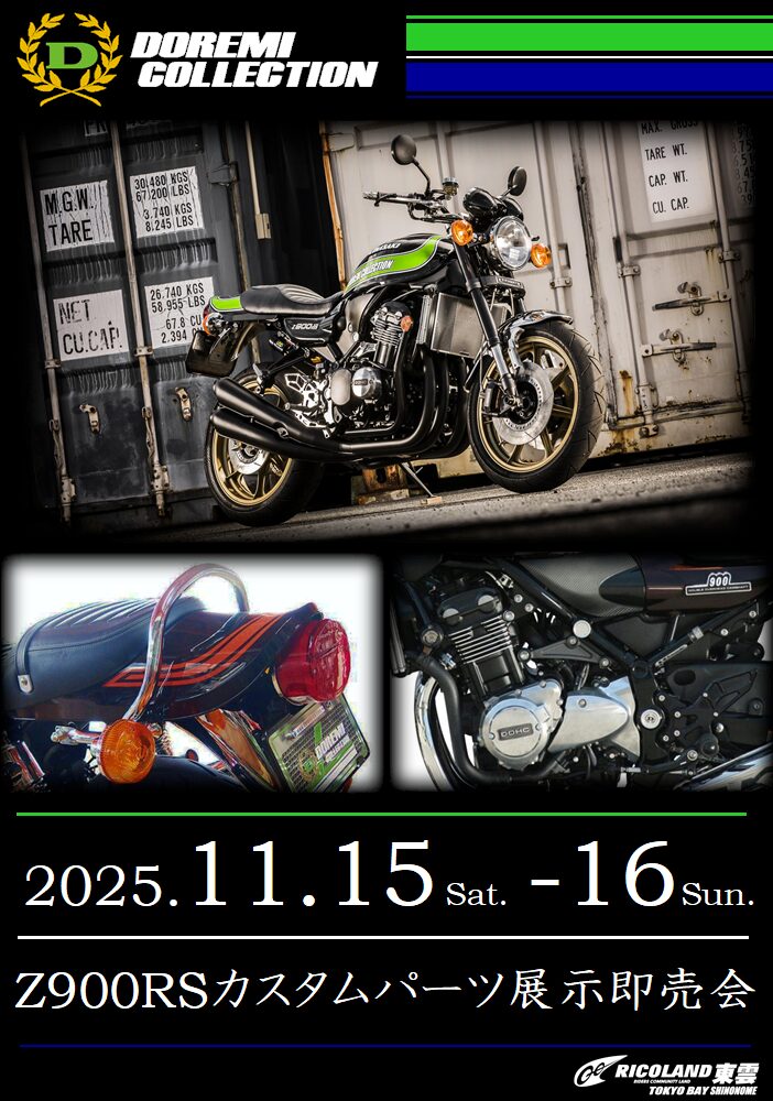 11/15-16(土日)ライコランド東雲さんにてドレミコレクション Z900RSカスタムパーツ展示即売会 開催!!