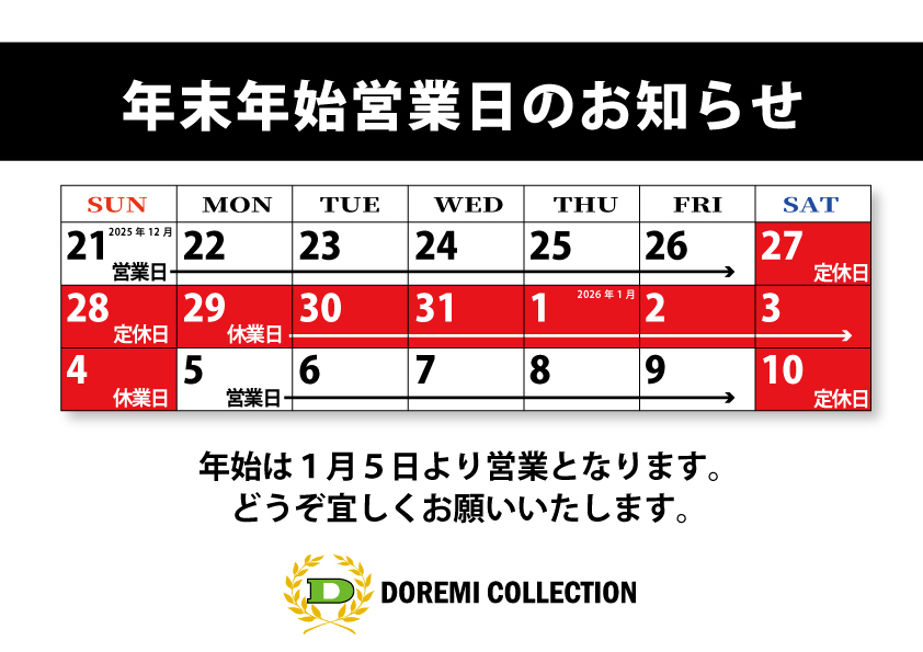冬期休業期間 2025年12月27日(土)~2026年1月4日(日)まで。