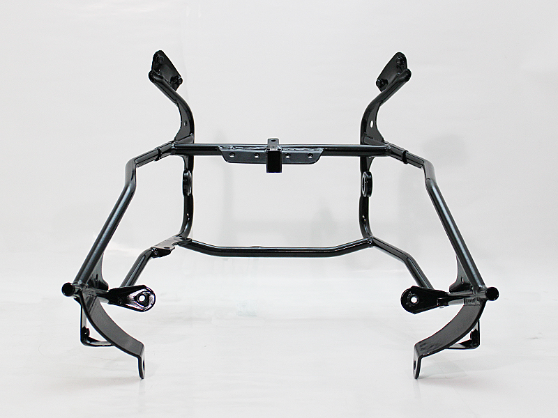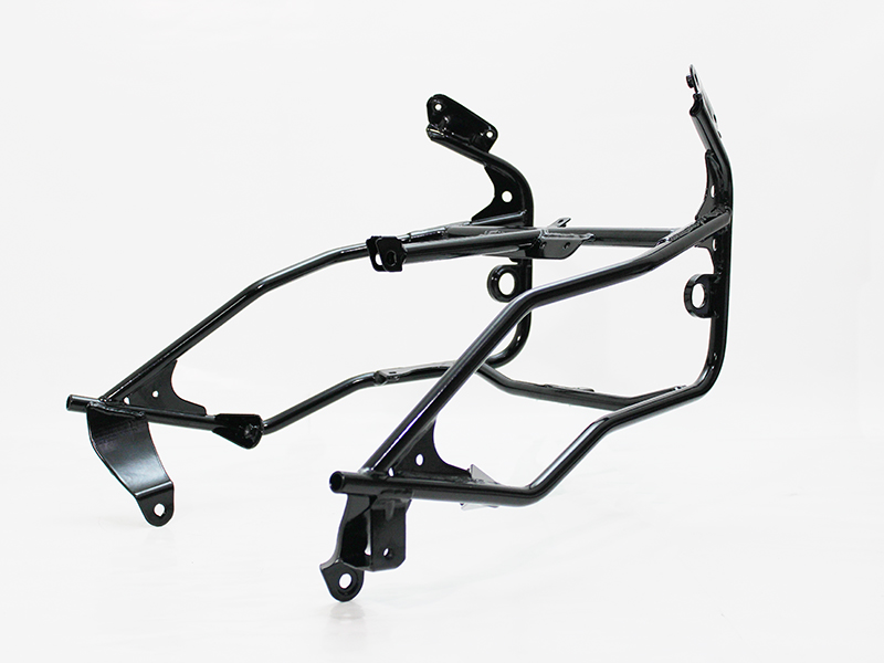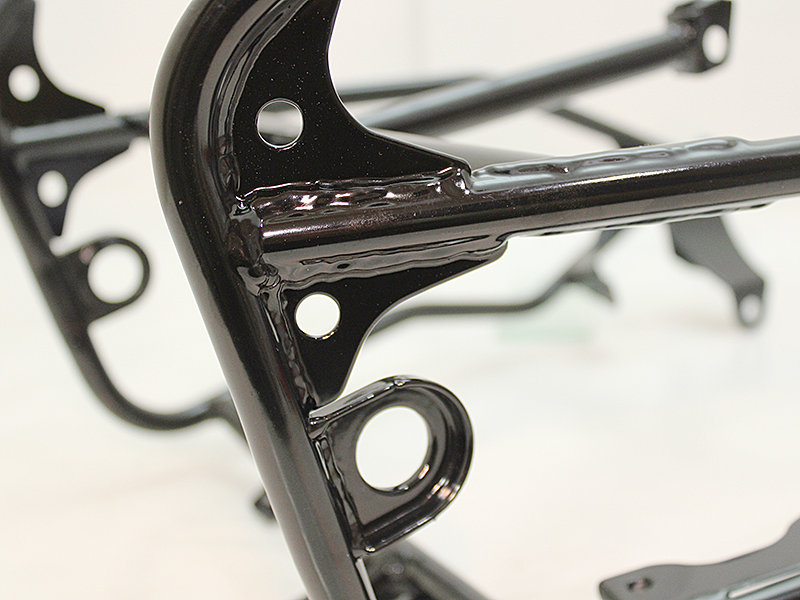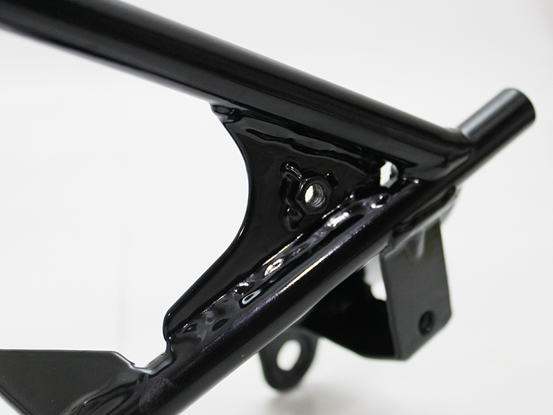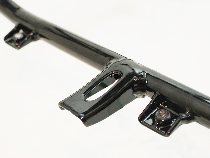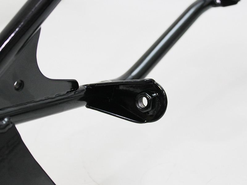 そこで、長らくカワサキ純正品が廃番となっていた「GPZ900R アッパーカウルステー」を、純正同等品として忠実に再現しました。形状や取付ボルト位置はもちろん、素材にはスチールパイプを採用し、溶接部の強度にも配慮。仕上げには耐久性に優れたパウダーコート(艶有り黒)を施しています。